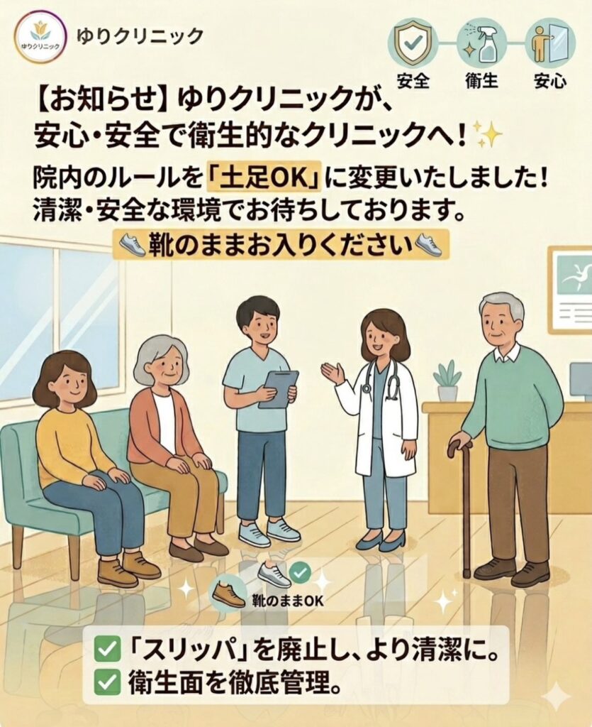 皆様により快適に過ごしていただけるよう、院内のルールを「土足OK」に変更いたしました!